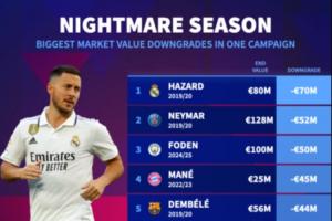 开云体育官网-单赛季身价最大下跌榜:阿扎尔领跑&两上榜,19/20赛季梅西入列